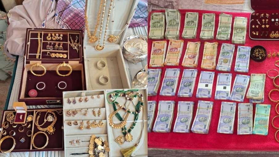 - दावणगेरे में एपीएमसी के सहायक निदेशक प्रभु जे के घर से बड़ी मात्रा में सोने के गहने और नकद जब्त किए गए।