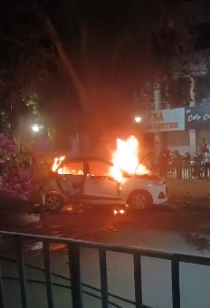 पुलिस स्टाफ जब कार के पास पहुंचा, तो अचानक उसमें आग लग गई। कुछ ही सेकंड में पूरी कार आग के गोले में तब्दील हो गई