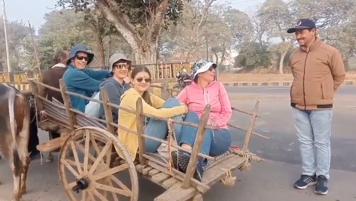 IncredibleIndia: छतरपुर में विश्व प्रसिद्ध पर्यटन नगरी खजुराहो में घूमने आए विदेशी पर्यटकों के एक समूह ने शहर की खूबसूरती को देखने के लिए अनोखा तरीका अपनाया। लग्जरी गाड़ियों को छोड़कर विदेशी सैलानियों ने शुद्ध देशी बैलगाड़ी की सवारी को प्राथमिकता दी, ताकि वे खजुराहो की प्राकृतिक और सांस्कृतिक सुंदरता को करीब से महसूस कर सकें।