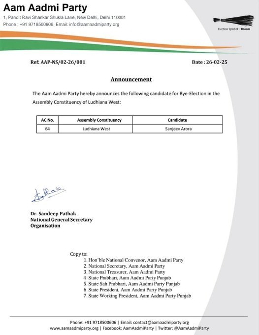 आम आदमी पार्टी के इस कदम से पंजाब की राजनीति में हलचल मच गई है। अब देखना यह होगा कि संजीव अरोड़ा इस उपचुनाव में क्या प्रदर्शन करते हैं और पार्टी आगे क्या रणनीति अपनाती है।