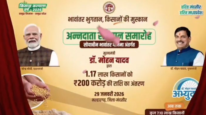 madhya pradesh : 1.17 लाख किसानों के खातों में ₹200 करोड़ सोयाबीन की भावांतर राशि ट्रांसफर
