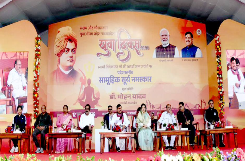 Madhya Pradesh :युवा दिवस पर मुख्यमंत्री डॉ. मोहन यादव का संदेश: स्वस्थ, शिक्षित और नशामुक्त युवा ही राष्ट्र की शक्तिराष्ट्रीय युवा दिवस और स्वामी विवेकानंद जयंती के अवसर पर भोपाल सहित पूरे प्रदेश में सामूहिक सूर्य नमस्कार कार्यक्रम आयोजित किए गए। भोपाल के सुभाष एक्सीलेंस स्कूल में हुए कार्यक्रम में मुख्यमंत्री डॉ. मोहन यादव शामिल हुए। उन्होंने कहा कि योग हमारी सनातन संस्कृति की अमूल्य धरोहर है। योग पूरे जीवन का सार है, जो व्यक्ति को शारीरिक, मानसिक और बौद्धिक रूप से सशक्त बनाकर उत्कृष्टता की ओर ले जाता है।