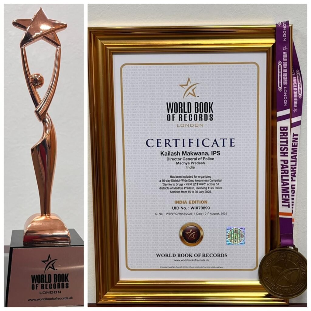 मध्यप्रदेश पुलिस के राज्यव्यापी जनजागरूकता अभियान “नशे से दूरी – है जरूरी” ने इतिहास रच दिया है। नशे के खिलाफ चलाए गए इस अभियान ने अपनी वृहद जनभागीदारी और प्रभावशीलता के चलते वर्ल्ड बुक ऑफ रिकॉर्ड्स में जगह बनाई है।