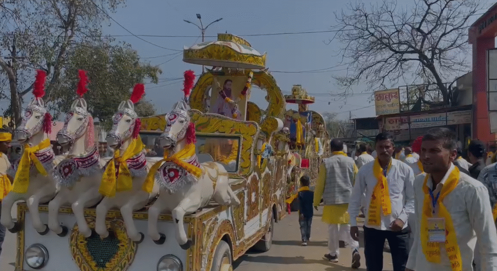Mahidpur कार्यक्रम का शुभारंभ रविवार सुबह 10 बजे कृषि उपज मंडी प्रांगण से हुआ, जहाँ बड़ी संख्या में समाज की महिलाएँ और पुरुष एकत्रित हुए। यहाँ से प्रारंभ हुई कलश यात्रा और चल समारोह नगर के प्रमुख मार्गों से गुजरा। नगरवासियों और विभिन्न जनप्रतिनिधियों ने जगह-जगह मंच बनाकर चल समारोह का आत्मीय स्वागत किया। श्री घोड़ा पछाड़ मंदिर समिति सहित अनेक सामाजिक संस्थाओं ने पुष्प वर्षा कर श्रद्धालुओं और अतिथियों का अभिनंदन किया।