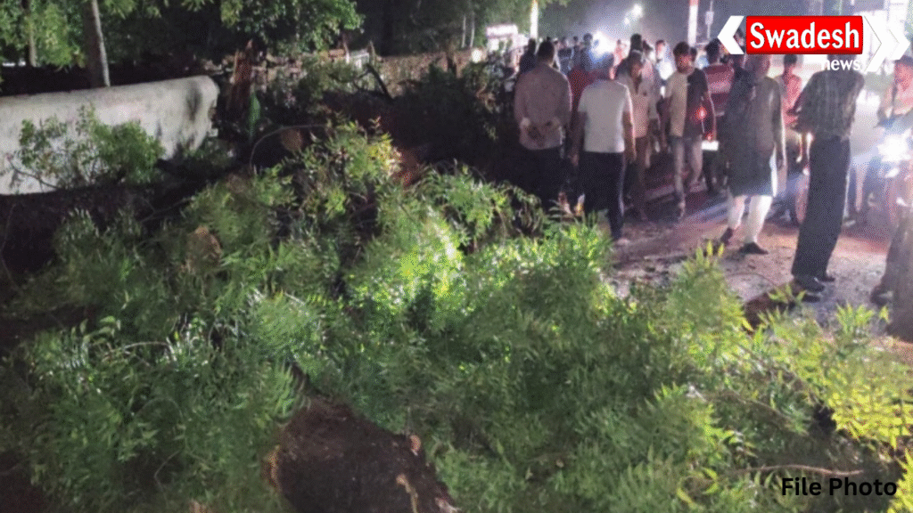 ग्वालियर: हॉस्पिटल रोड पर शुक्रवार सुबह एक गंभीर हादसा होते-होते टल गया। लगभग 70 साल पुराने पीपल के पेड़ की भारी-भरकम डाल अचानक सड़क पर गिर गई। उसी समय विकास गुप्ता अपने 12 वर्षीय बेटे अनादि के साथ स्कूटी से वहाँ से गुजर रहे थे। डाल उनकी स्कूटी पर आ गिरी, जिससे विकास गुप्ता गंभीर रूप से घायल हो गए, जबकि बेटा अनादि चमत्कारिक रूप से बच गया। दोनों को तुरंत नज़दीकी अस्पताल ले जाया गया, जहाँ उनका इलाज जारी है।