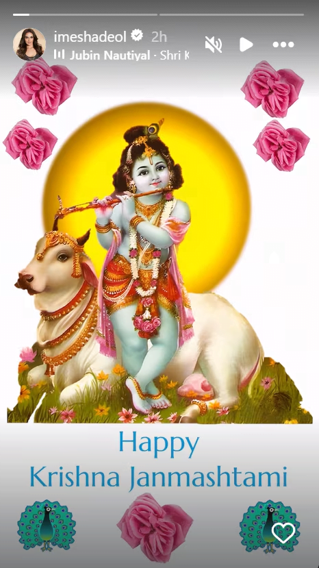 हेमा मालिनी की बेटी और एक्ट्रेस ईशा देओल ने भी जन्माष्टमी की बधाई दी हैं। उन्होंने कान्हा जी का मुरली बजाते हुए एक पोस्ट शेयर किया है, जिसमें वह गाय के पास खड़े हैं।
