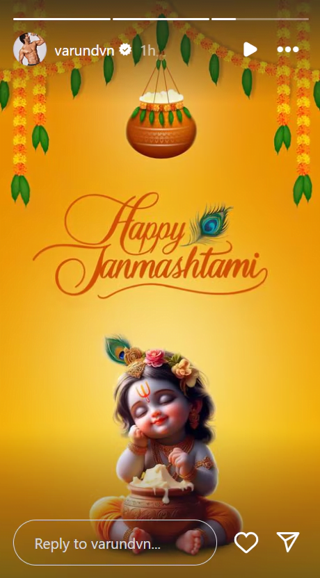वरुण धवन ने भी जन्माष्टमी के मौके पर कान्हा जी का प्यारा सा पोस्टर शेयर किया है और लिखा , हैप्पी जन्माष्टमी।