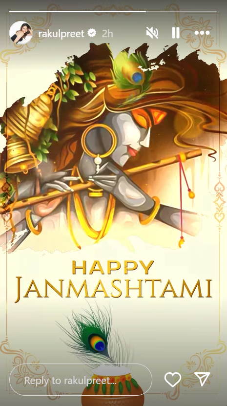 रकुल प्रीत सिंह ने भी फैंस को जन्माष्टमी की शुभकामनाएं देते हुए कृष्णा जी का पोस्टर शेयर करते हुए, लिखा हैप्पी जन्माष्टमी।