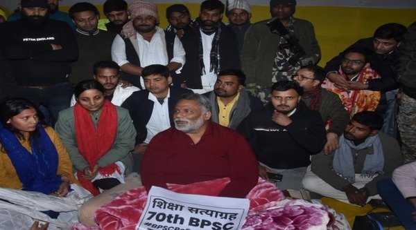 पूर्णिया सांसद राजेश रंजन उर्फ पप्पू यादव ने बिहार लोक सेवा आयोग (BPSC)की 70वीं संयुक्त प्रारंभिक परीक्षा को रद्द करने की मांग को लेकर धरने पर बैठे छात्रों का समर्थन किया है। पप्पू यादव सोमवार की देर रात पटना के गर्दनी बाग धरना स्थल पहुंचे और छात्रों के साथ बैठ गए। खास बात ये है कि पप्पू यादव का जन्मदिन भी है। सांसद पप्पू यादव ने सोशल मीडिया पर अपने एक्स हैंडल पर लिखा कि बिहार सरकार और बीपीएससी होश में आओ। छात्र हित में ये परीक्षा रद्द होना चाहिए। परीक्षा माफिया के चंगुल से बाहर आओ। ये बेटियां इस भीषण ठंड में धरना पर बैठी थीं। मैं कैसे घर में सो जाता? साथियों रजाई से बाहर आओ, तभी क्रांति होगी। इससे पहले सोमवार की शाम भी सांसद धरना स्थल पहुंचे थे और छात्रों की मांगों का समर्थन किया था। विधानसभा में विपक्ष के नेता तेजस्वी यादव ने भी प्रदर्शनकारियों का समर्थन किया है। गौरतलब है कि 13 दिसंबर को आयोजित संयुक्त प्रतियोगी परीक्षा में प्रदेश की राजधानी पटना के बापू भवन परीक्षा केंद्र पर प्रश्नपत्र लीक होने की अफवाह फैल गई थी, जिसके बाद सैकड़ों उम्मीदवारों ने अपना विरोध दर्ज कराने के लिए परीक्षा का बहिष्कार भी किया था। हालांकि, बीपीएससी ने दावा किया कि ऐसी अफवाह फैलाने वाले लोग असामाजिक तत्व थे। हालांकि बीपीएससी ने बापू परीक्षा परिसर में परीक्षा देने वाले 5,000 से अधिक उम्मीदवारों के लिए फिर से परीक्षा आयोजित करने का आदेश दिया है.