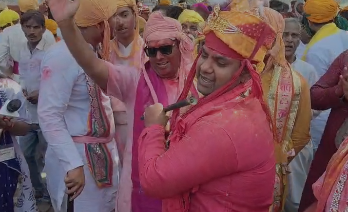Mathura : बरसाना में नंदगाँव के ‘होरियारों’ का जमावड़ा: पीली पोखर पर सजी समाज, द्वापरकालीन प्रेम-युद्ध की तैयारी
