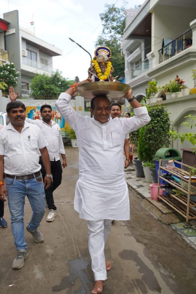पर्यावरण संरक्षण का संदेश: नगर निगम अध्यक्ष किशन सूर्यवंशी ने गव्य गणेश जी का किया विसर्जन