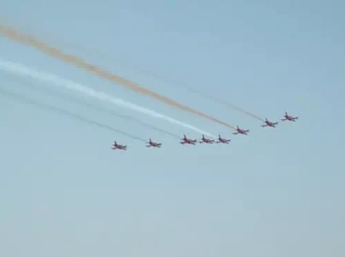 - सूर्यकिरण एरोबेटिक टीम ने आसमान में अद्भुत करतब दिखाकर सम्मान जताया।
