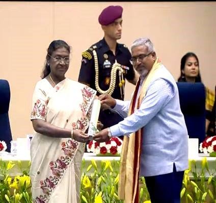 भोपाल : राष्ट्रपति श्रीमती द्रौपदी मुर्मु ने दिल्ली में शिक्षक दिवस पर शासकीय संभागीय आईटीआई भोपाल के प्रशिक्षण अधिकारी श्री राजेन्द्र मालवीय को राष्ट्रीय शिक्षक पुरस्कार-2025 से सम्मानित किया। यह सम्मान उन्हें दीर्घ अवधि इंजीनियरिंग ट्रेड श्रेणी में सर्वश्रेष्ठ कौशल प्रशिक्षक के रूप में उत्कृष्ट योगदान के लिए दिया गया।