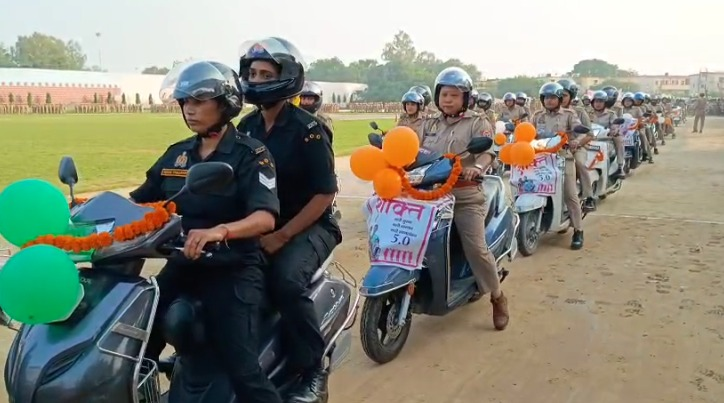 संभल में महिला पुलिस की स्कूटी रैली