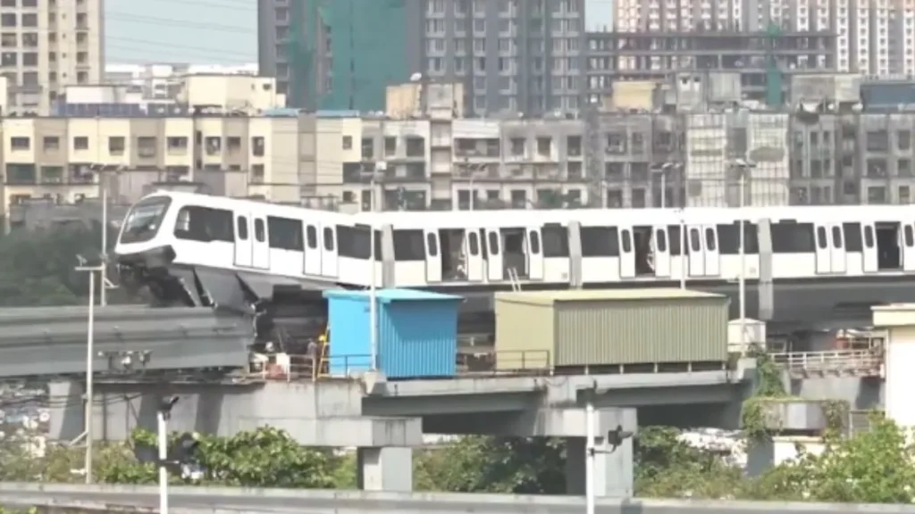 मुंबई में मोनोरेल पटरी से उतरी, पहले डिब्बे का हिस्सा हवा में उठ गया