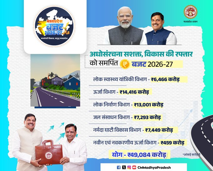 MP Budget 2026-27 : लोक निर्माण विभाग को बड़ी सौगात, सड़क–सेतु से ग्रामीण कनेक्टिविटी तक विकास की रफ्तार होगी तेज