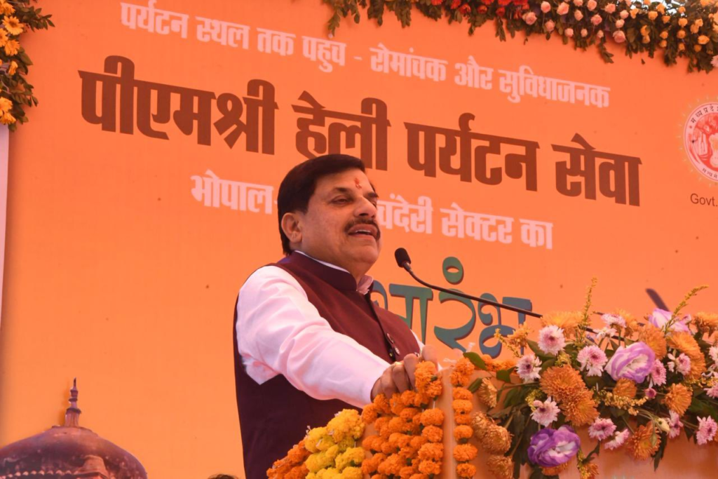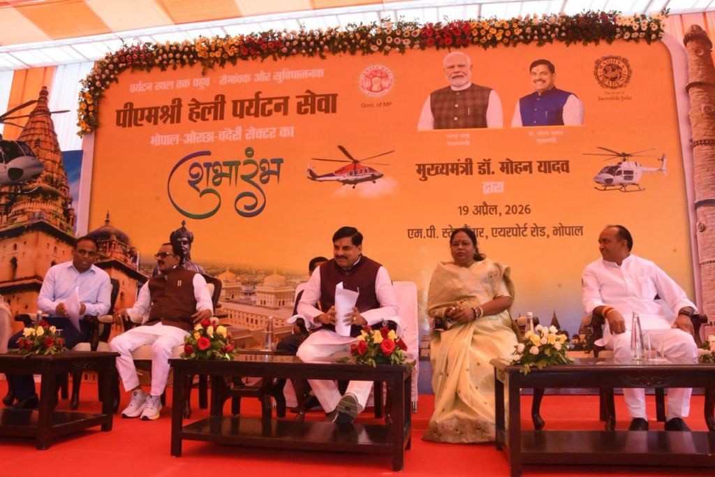 MP Heli Tourism : मुख्यमंत्री डॉ. मोहन यादव ने राजकीय विमानतल, भोपाल से “पीएमश्री हेली पर्यटन सेवा” के अंतर्गत नए सेक्टर ‘भोपाल–चंदेरी–ओरछा’ का हेलीकॉप्टर को हरी झंडी दिखाकर शुभारंभ किया।