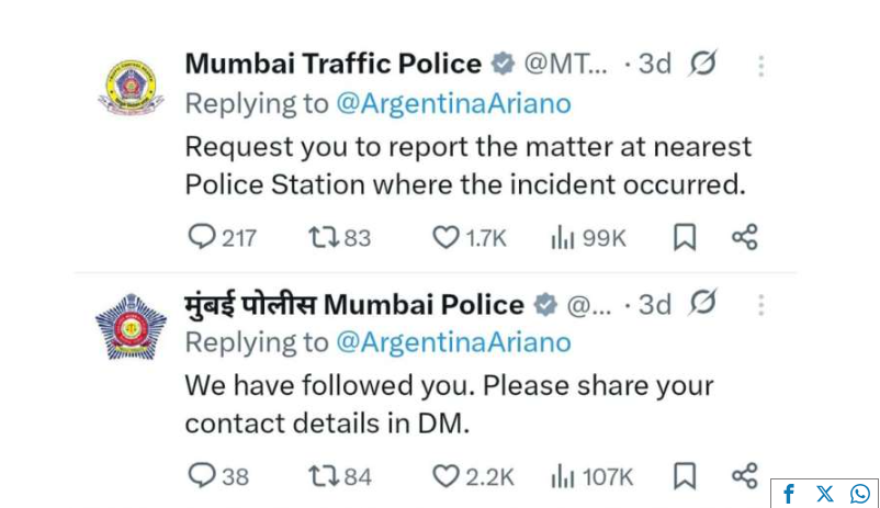Mumbai ठगी का शिकार हुई महिला ने 26 जनवरी को ‘X’ (पूर्व में ट्विटर) पर अपनी आपबीती साझा की। उन्होंने बताया कि किस तरह ड्राइवर और उसके साथी ने उन्हें गुमराह किया और लूट लिया। यह पोस्ट देखते ही देखते वायरल हो गई और इसे एक लाख से ज्यादा लोगों ने देखा। सोशल मीडिया पर बढ़ते दबाव और शहर की छवि पर आते खतरे को देख मुंबई पुलिस ने तुरंत मामले का संज्ञान लिया।