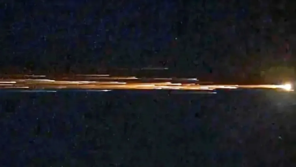 शुक्रवार देर रात जब लोग सो रहे थे, तभी अचानक आसमान में तेज चमकदार लकीर दिखी। प्रत्यक्षदर्शियों के मुताबिक, कुछ सेकंड तक रोशनी इतनी प्रखर थी कि आसपास की रोशनी भी फीकी पड़ गई। इसके बाद उल्कापिंड कई हिस्सों में बिखर गया और आसमान में चमकते टुकड़ों का निशान छोड़ गया।