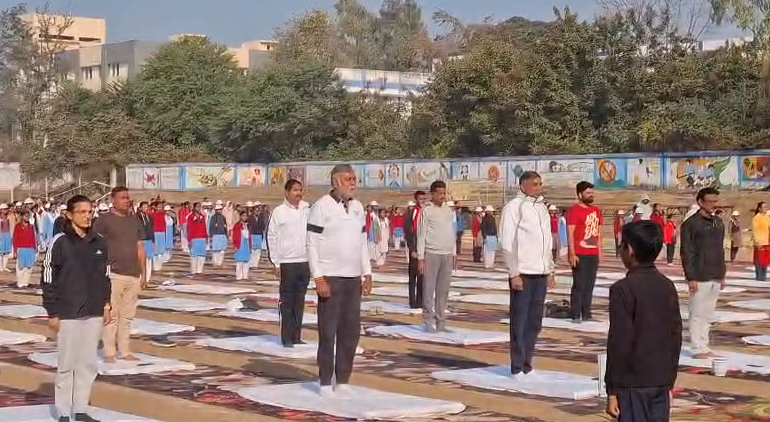 Narsinghpur: युवा दिवस पर नरसिंहपुर में सामूहिक सूर्य नमस्कार का आयोजन