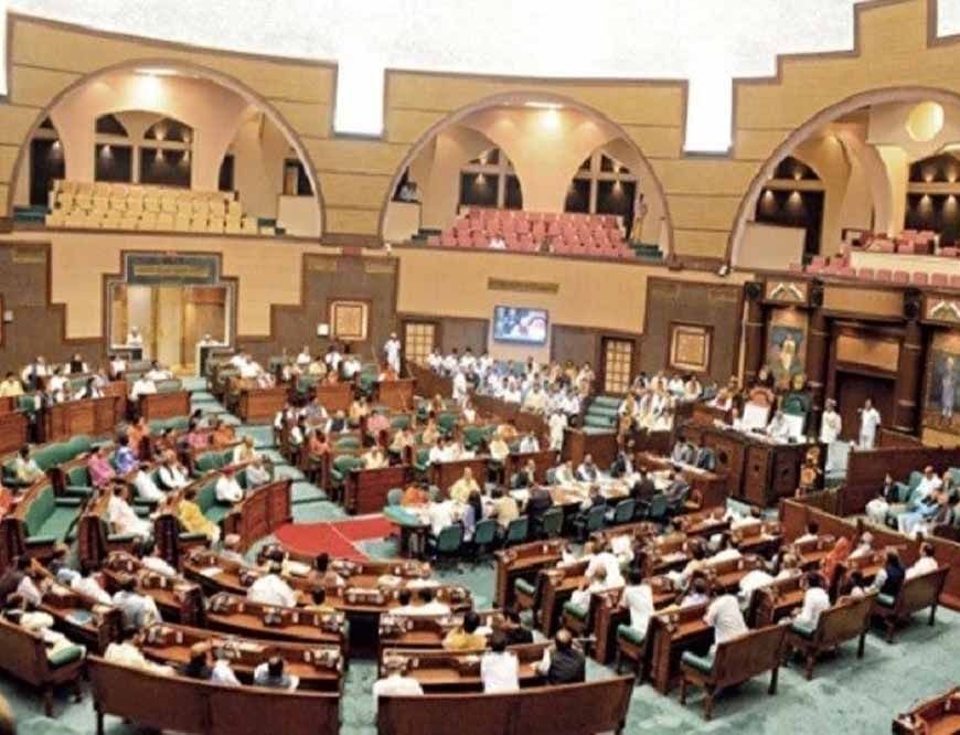 कांग्रेस विधायकों ने सदन के बाहर गांधी प्रतिमा के सामने खाद की बोरियों के साथ प्रदर्शन किया। उन्होंने सरकार पर आरोप लगाया कि किसानों को खाद नहीं मिल रही।