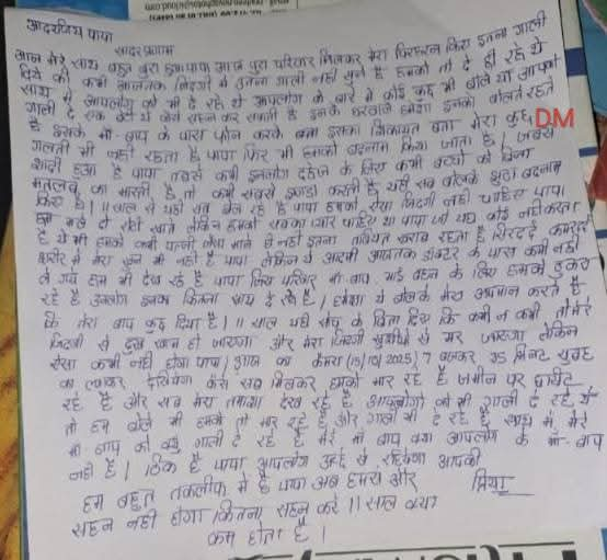 सुसाइड नोट में लिखा: “पापा, अब बहुत दूर जा रही हूं”