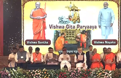 उडुपी: प्रधानमंत्री नरेंद्र मोदी ने कर्नाटक के उडुपी स्थित श्रीकृष्ण मठ का दर्शन किया और ऐतिहासिक लक्ष कंठ गीता पारायण कार्यक्रम में भाग लिया। इस अनूठे आयोजन में प्रधानमंत्री ने छात्रों, संतों, विद्वानों और हजारों नागरिकों के साथ भगवद गीता का पाठ किया। इस कार्यक्रम में एक लाख से अधिक प्रतिभागियों ने गीता श्लोकों का एक स्वर में उच्चारण किया।