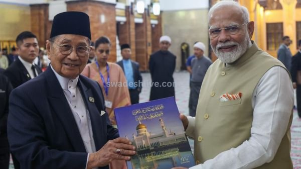 प्रधानमंत्री नरेंद्र मोदी ब्रुनेई के दो दिवसीय दौरे पर हैं। यहां उन्होंने राजधानी बंदर सेरी बेगवान में ऐतिहासिक सुल्तान उमर अली सैफुद्दीन मस्जिद का दौरा किया। वे कुछ देर मस्जिद में रुके, यहां उन्होंने एक वीडियो भी देखा और मस्जिद के इमाम से भी मुलाकात की।
