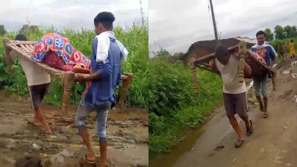 नवरंगपुर, ओडिशा : ओडिशा के नवरंगपुर जिले से एक अत्यंत हृदयविदारक घटना सामने आई है, जिसने ग्रामीण क्षेत्रों में बुनियादी सुविधाओं की कमी पर सवाल खड़े कर दिए हैं। सड़क न होने के कारण एक गर्भवती महिला को ग्रामीणों ने खाट पर लिटाकर ढाई किलोमीटर पैदल यात्रा कर एम्बुलेंस तक पहुंचाया, लेकिन अस्पताल पहुंचने से पहले ही महिला ने मृत बच्चे को जन्म दे दिया।