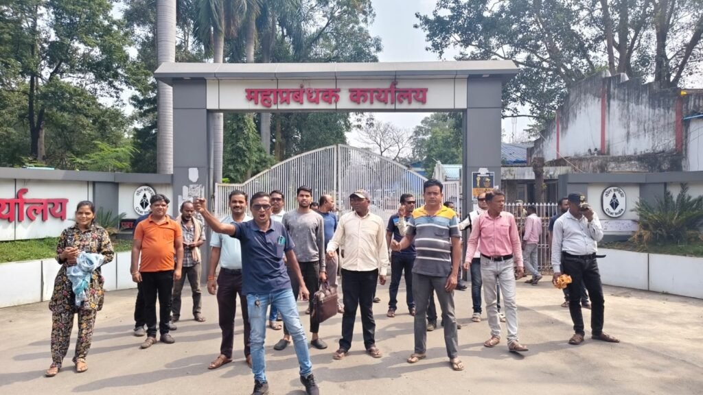 कोरबा में भूविस्थापितों का प्रदर्शन: आउटसोर्सिंग कंपनियों में रोजगार की मांग, एसईसीएल मुख्यालय का घेराव