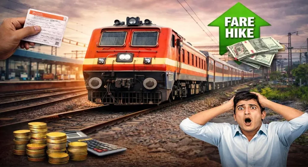 Railway news: भारतीय रेलवे ने लंबी दूरी की यात्राओं के लिए किराए में इजाफा करने का फैसला किया है। यह संशोधित किराया 26 दिसंबर 2025 से लागू होगा। नए नियमों के तहत 215 किलोमीटर से अधिक दूरी की यात्रा करने वाले यात्रियों को प्रति किलोमीटर 1 से 2 पैसे ज्यादा चुकाने होंगे।