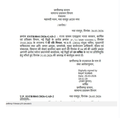 सरकारी आदेश के अनुसार, रवि मित्तल को 31 मार्च 2026 की अपराह्न से उनके वर्तमान पद से कार्यमुक्त किया जाएगा। इसके बाद वे नई जिम्मेदारी संभालने के लिए दिल्ली रवाना होंगे।