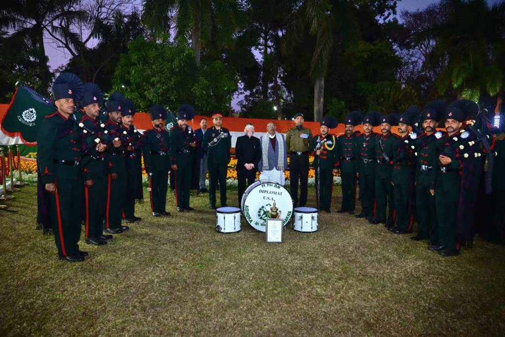 ranchi news : गणतंत्र दिवस समारोह–2026 के उपलक्ष्य में राज्यपाल संतोष कुमार गंगवार की गरिमामयी उपस्थिति में लोक भवन, राँची में आज ‘सामूहिक बैंड डिस्प्ले’ एवं ‘एट होम’ कार्यक्रम का आयोजन किया गया। इस अवसर पर माननीय झारखण्ड विधानसभा अध्यक्ष श्री रबीन्द्रनाथ महतो, पुलिस महानिदेशक, पद्म पुरस्कार से सम्मानित व्यक्तिगण, वरिष्ठ प्रशासनिक व पुलिस अधिकारीगण एवं सैन्य अधिकारीगण तथा अन्य गणमान्य अतिथि उपस्थित थे।