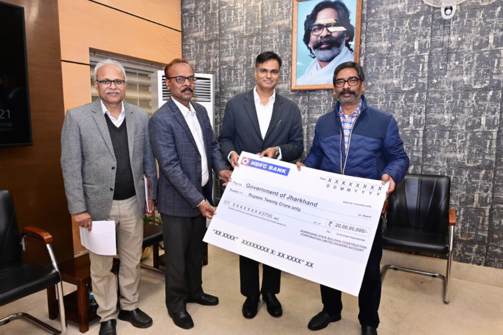 Ranchi : झारखंड स्टेट बिल्डिंग कंस्ट्रक्शन कॉरपोरेशन लिमिटेड ने अपनी आय से 20 करोड़ रुपए डिविडेंड के रूप में राज्य सरकार को प्रदान किए।