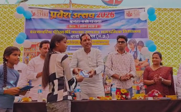 Sagar सागर जिले के बण्डा स्थित शासकीय पीएमश्री कन्या उच्चतर माध्यमिक विद्यालय में नए शैक्षणिक सत्र के उपलक्ष्य में ‘प्रवेशोत्सव’ का भव्य आयोजन किया गया। इस कार्यक्रम के माध्यम से नव-प्रवेशित छात्राओं का स्वागत किया गया और उन्हें बेहतर भविष्य के लिए प्रोत्साहित किया गया।