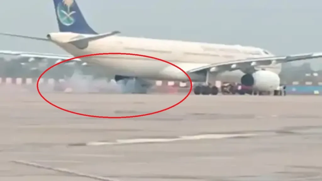 इस विमान में 250 हज यात्री और क्रू मेंबर्स सवार थे। लैंडिंग सामान्य रूप से हुई, लेकिन टैक्सी-वे पर बढ़ते वक्त अचानक बाएं पहिए से धुआं और चिंगारी निकलती दिखी।