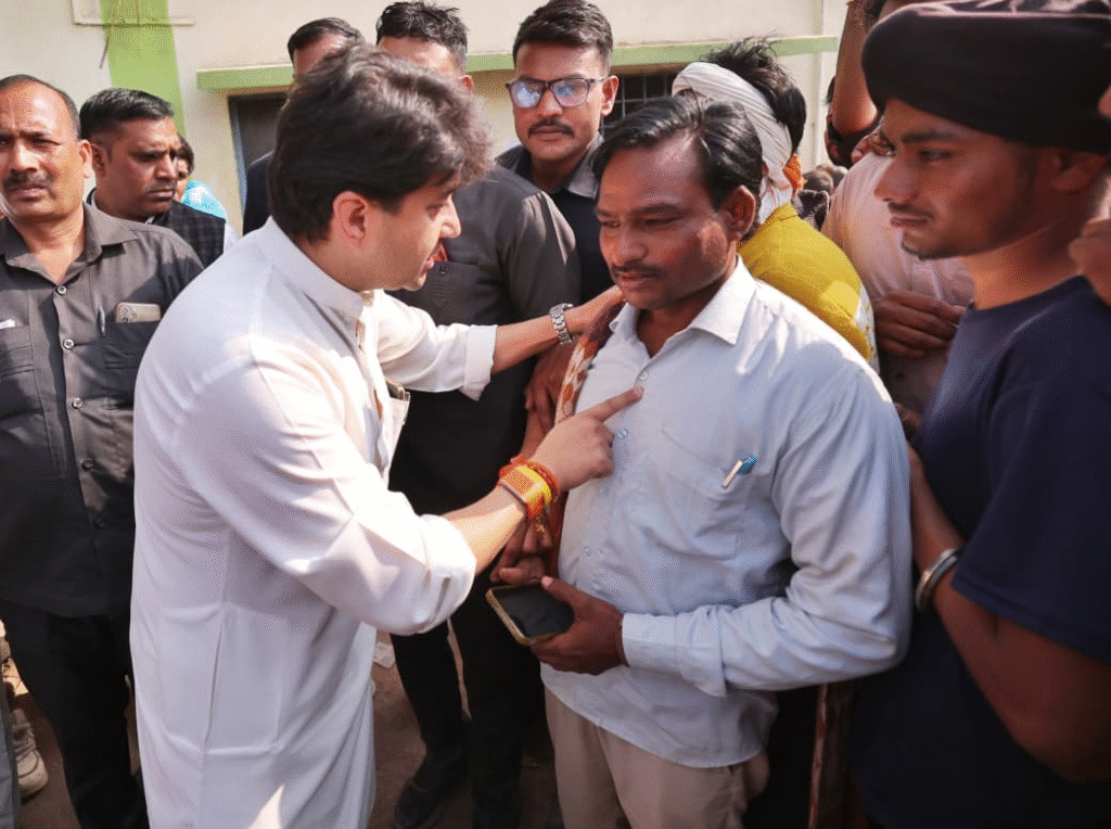 मृतका के परिजन से मिले सिंधिया और बद्तमीजी करने वाले क्लर्क महेंद्र सिंह जाटव को किया तत्काल निलंबित