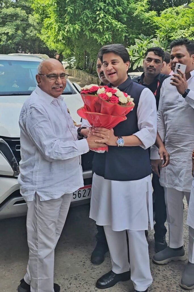 भोपाल/नई दिल्ली। केंद्रीय मंत्री ज्योतिरादित्य सिंधिया शुक्रवार को एक दिवसीय दौरे पर भोपाल पहुँचे, जहां उन्होंने भाजपा प्रदेशाध्यक्ष हेमंत खंडेलवाल से मुलाकात कर संगठन से जुड़े महत्वपूर्ण मुद्दों पर चर्चा की। इस दौरान पार्टी के आगामी कार्यक्रम, संगठन की संरचना, मध्यप्रदेश में विकास की दिशा और जनकल्याण से जुड़े विषय बातचीत के केंद्र में रहे।