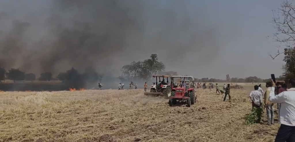 चांदबढ़ गांव के बाहर स्थित इस खेत में किसान और मजदूर गेहूं काटने की तैयारी में जुटे ही थे, तभी अचानक खेत के एक हिस्से से आग की लपटें उठने लगीं।