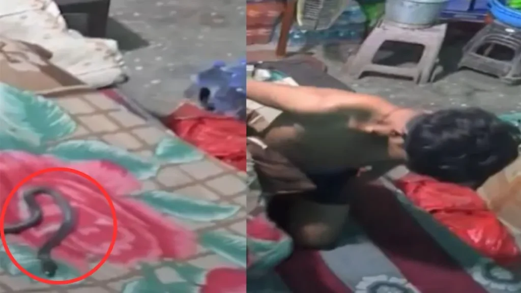 CCTV फुटेज में स्पष्ट रूप से देखा जा सकता है कि सांप मनोज के शरीर पर रेंगता है और उसे डस लेता है।
