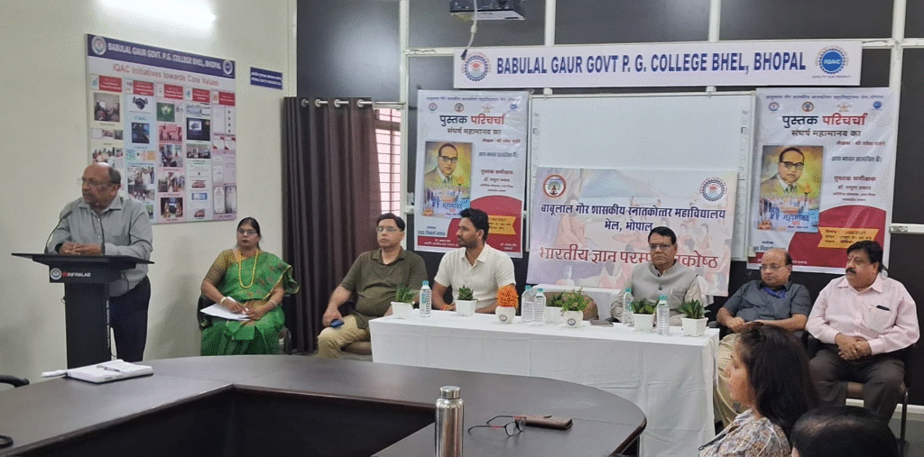 भोपाल। बाबा साहेब अंबेडकर के जीवन का सार तीन महत्वपूर्ण मूल्यों में निहित है सामाजिक न्याय, आत्मसम्मान और स्वतंत्रता। ये प्रत्येक व्यक्ति के जीवन के लिए अनिवार्य हैं। यह बात सेवानिवृत्त आईएएस श्री अजातशत्रु श्रीवास्तव ने संघर्ष महामानव (लेखक: श्री रमेश पतंगे) पुस्तक पर आयोजित परिचर्चा में कही। यह कार्यक्रम भारतीय ज्ञान परंपरा प्रकोष्ठ बाबूलाल गौर शासकीय महाविद्यालय, भेल एवं प्रज्ञा प्रवाह मध्यप्रांत द्वारा आयोजित किया गया।