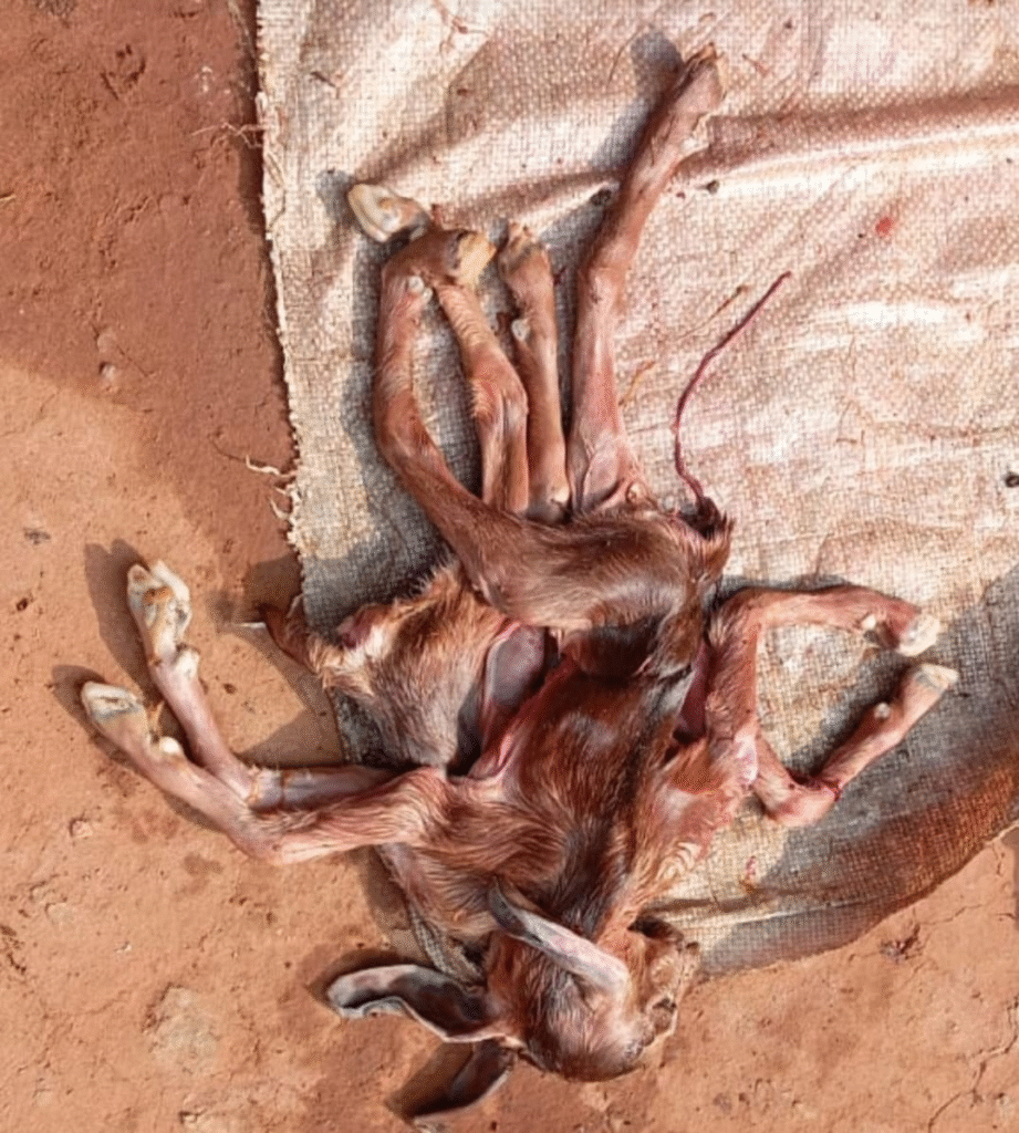 सूरजपुर: आठ पैर, तीन कान और दो कमर वाली बकरी का बच्चा जन्मा, जन्म के कुछ देर बाद मौत