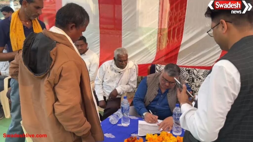 ग्रामीणों ने मंत्री के सामने अदानी कंपनी से प्रभावित विस्थापन, पेंशन, और बिजली जैसी समस्याओं को उठाया।