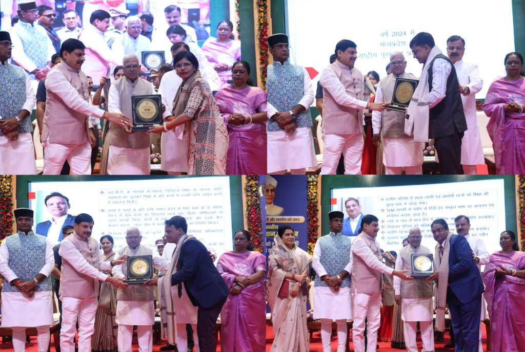 भोपाल, मध्यप्रदेश में शिक्षक दिवस पर राजधानी भोपाल के आरसीवीपी नरोन्हा प्रशासन एवं प्रबंधकीय अकादमी में राज्य स्तरीय शिक्षक सम्मान समारोह का आयोजन हुआ। इस मौके पर राज्यपाल मंगुभाई पटेल और मुख्यमंत्री डॉ. मोहन यादव ने प्रदेशभर के उत्कृष्ट शिक्षकों को सम्मानित किया।
