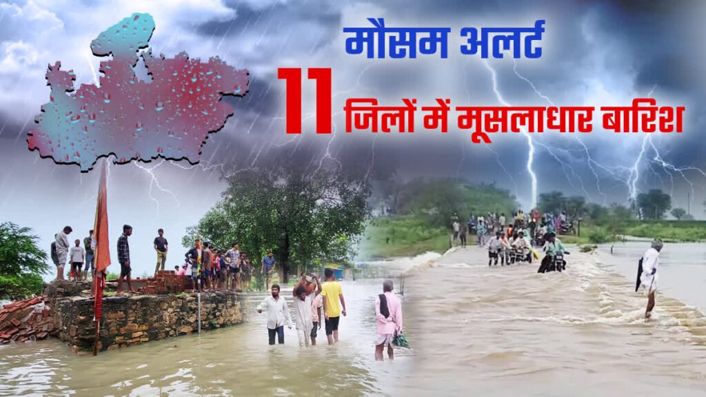 मध्यप्रदेश में मूसलधार बारिश का सिलसिला जारी: 11 जिलों में अलर्ट, ग्वालियर-चंबल में भारी पानी की संभावना, इंदौर-उज्जैन में यलो अलर्ट