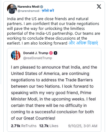 हाल ही में ट्रंप और पीएम मोदी ने सोशल मीडिया पर भारत-अमेरिका रिश्तों को सकारात्मक दिशा देने की बात कही थी।