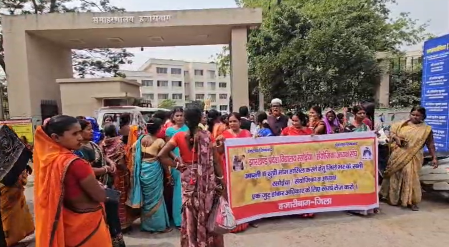 Hazaribagh झारखंड प्रदेश विद्यालय रसोइया-संयोजिका अध्यक्ष संघ के नेतृत्व में मंगलवार को रसोइयों और संयोजिकाओं ने अपनी लंबित मांगों को लेकर जोरदार विरोध प्रदर्शन किया। भारी संख्या में जुटी महिलाओं ने हजारीबाग उपायुक्त (DC) और जिला शिक्षा अधीक्षक कार्यालय तक जुलूस निकाला और अपनी मांगों का ज्ञापन सौंपा। संघ का कहना है कि दो दशकों से सेवा दे रही गरीब महिलाओं के साथ सरकार न्याय नहीं कर रही है, जिससे अब उनके सब्र का बांध टूट गया है।