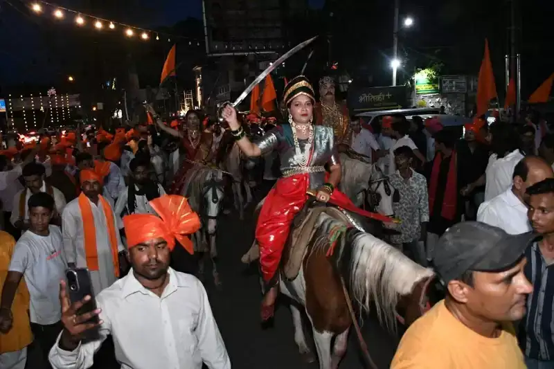 - बालिकाओं ने वीरांगना के रूप में हाथ में तलवार लिए हुए अश्वों पर सवार होकर यात्रा की शोभा बढ़ाई।