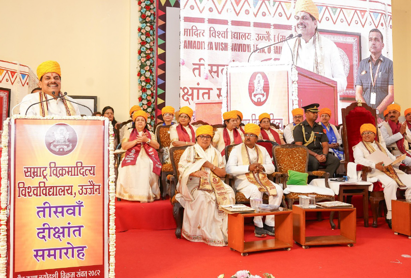 Madhya Pradesh धार्मिक और शैक्षणिक नगरी उज्जैन के सम्राट विक्रमादित्य विश्वविद्यालय का 30वां दीक्षांत समारोह मंगलवार को स्वर्ण जयंती सभागृह में गरिमामय ढंग से संपन्न हुआ। राज्यपाल श्री मंगुभाई पटेल की अध्यक्षता और मुख्यमंत्री डॉ. मोहन यादव के मुख्य आतिथ्य में आयोजित इस समारोह में मेधावी छात्रों को उपाधियां और मेडल प्रदान किए गए।