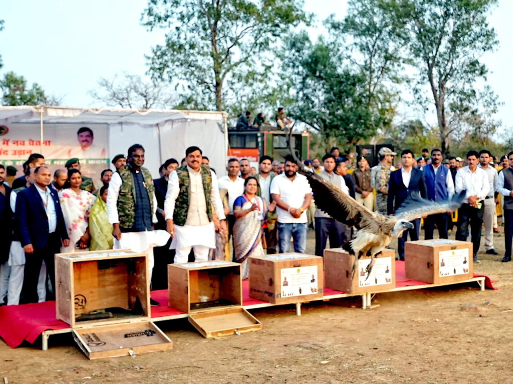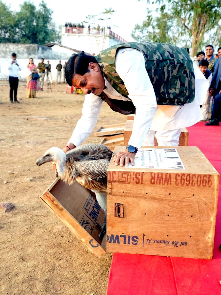 Vulture conservation MP : मुख्यमंत्री डॉ. यादव ने लुप्तप्राय प्रजाति के 5 गिद्धों को हलाली डैम क्षेत्र में किया मुक्त